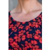 Šaty vhodné pro svatebčany a svatební maminky, na večírky, promoce i do divadla. Červené květy na tmavě modrém podkladu hezky ladí a originální nařasený výstřih ozvláštní Váš dekolt. Šaty z naší výroby si zamilujete a budete je hrdě nosit. Rozhodně budete originální. Materiál je velmi příjemný, elastický a pohodlný.